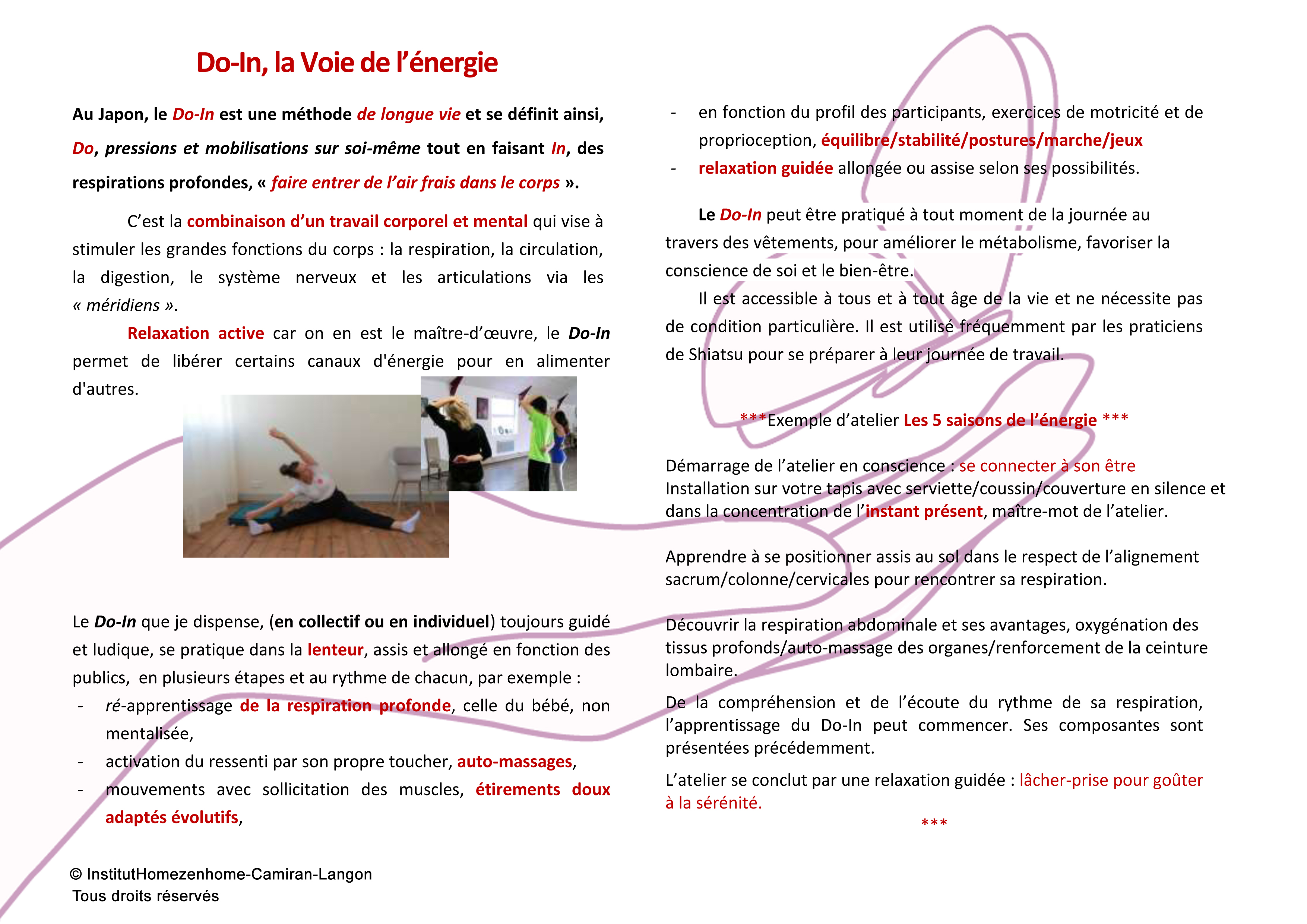 Dô-In relaxation, réveil musculaire et postural, ergonomie sur le lieu de travail